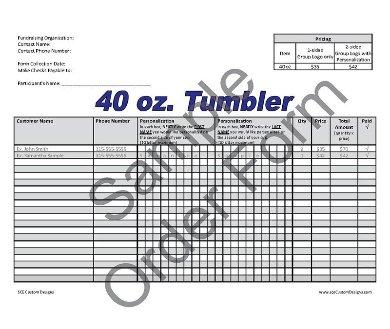 Week 3- Turn in order forms to your group leader and the group leader gives a copy of them to SCE Custom Designs