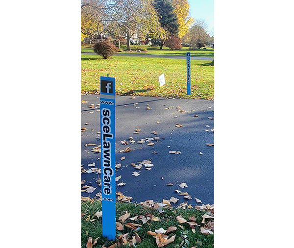 Custom cut driveway markers for snow contractors out of 10 mm coroplast.